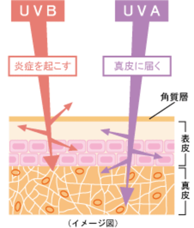UV-B波はエネルギーが強く、肌表面の細胞を傷つけたり、炎症を起こしたり、皮膚ガンや白内障などの原因になります。